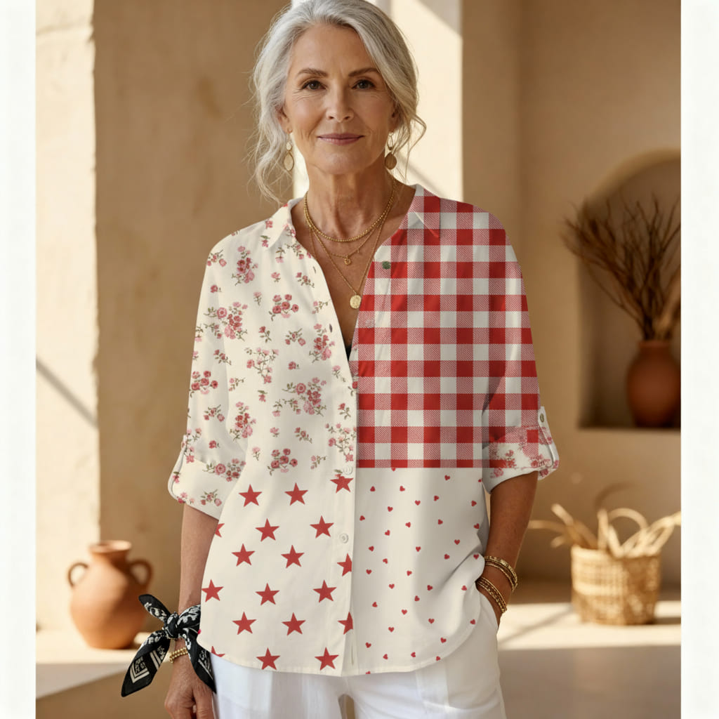 אליז - בלוזת פאטשׁוֹרק כפרית משלבת הדפסים נוסטלגיים בעיצוב בולט אחד — פרחים עדינים, משבצות גינגהם, כוכבים נועזים ולבבות קטנים. התמהיל הזה של פאטשׁוֹרק יוצר בלוזה עליזה, בהשראת חוות, שמרגישה גם ישנה וגם חדשה.